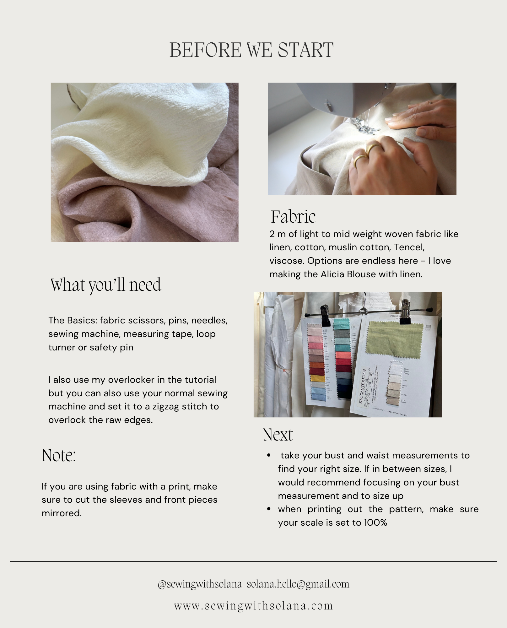 Fabric: In my tutorial I am using textured linen fabric and I was so happy with my choice of fabric. I have made the blouse before with linen, cotton and muslin cotton and all fabrics worked perfectly. A linen and viscose blend would also be very suitable.