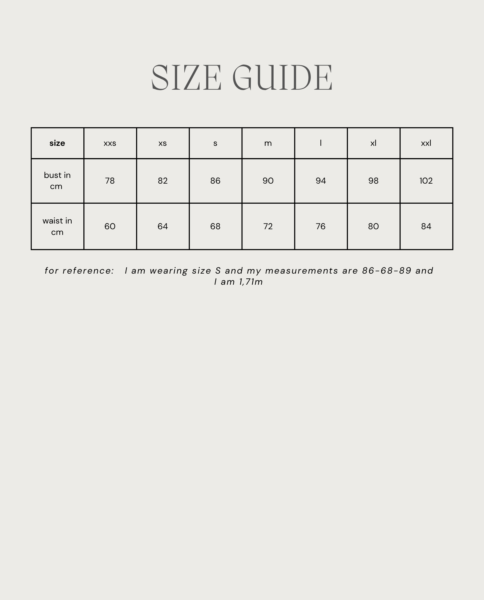 Size: xxs-xxl