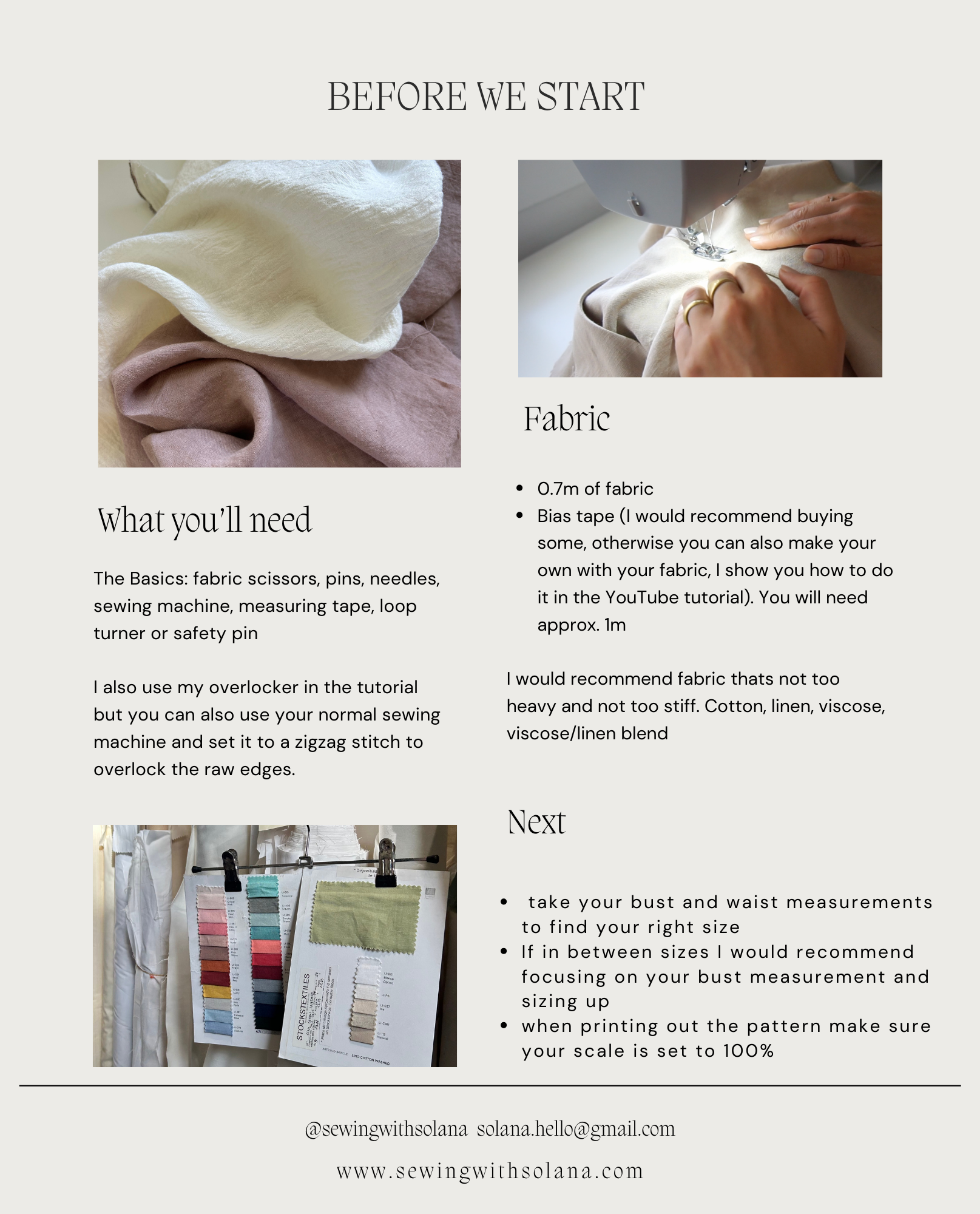 1. the sewing pattern does not come with written instruction, instead you will find an in depth sewing tutorial on YouTube (click here to see video).