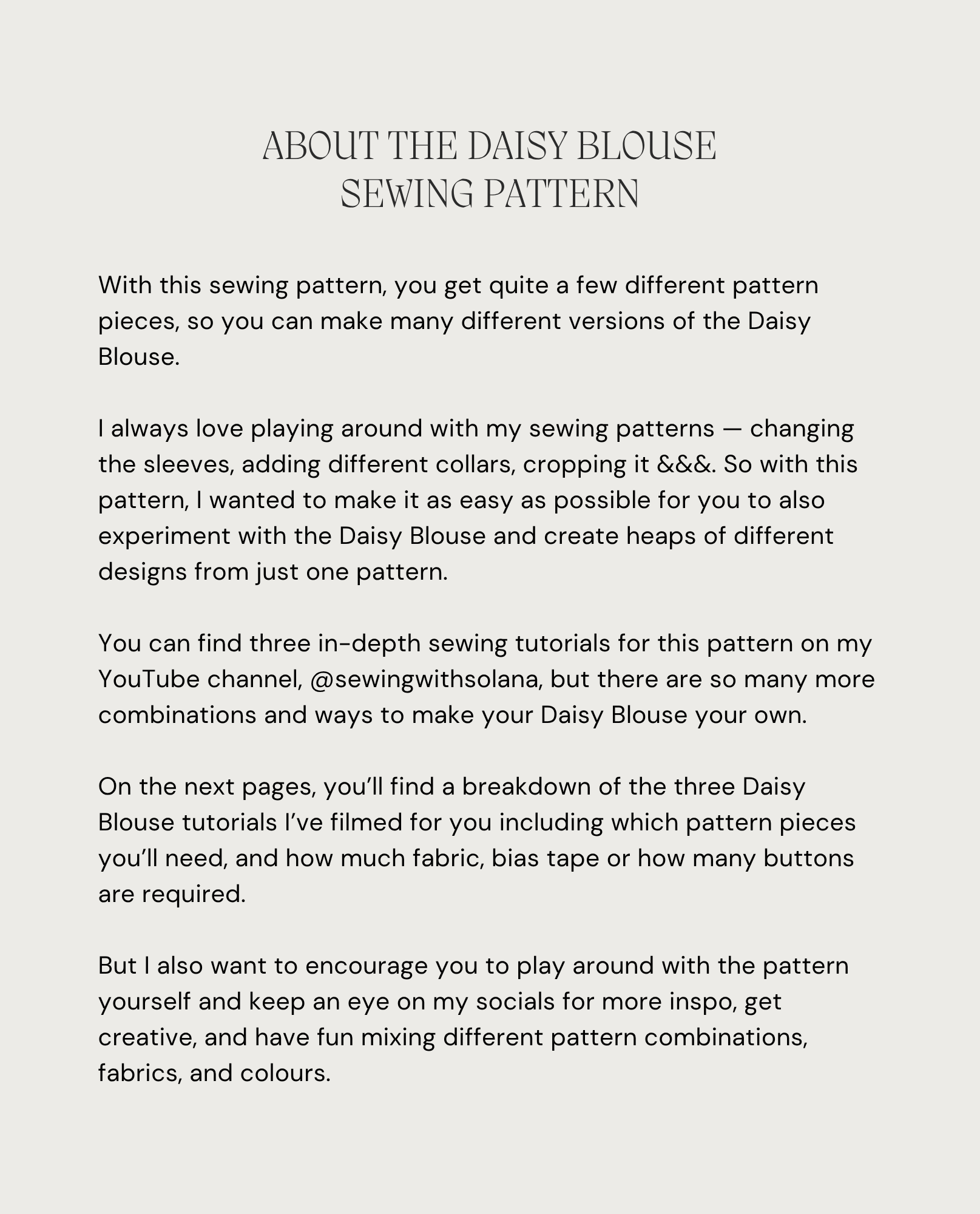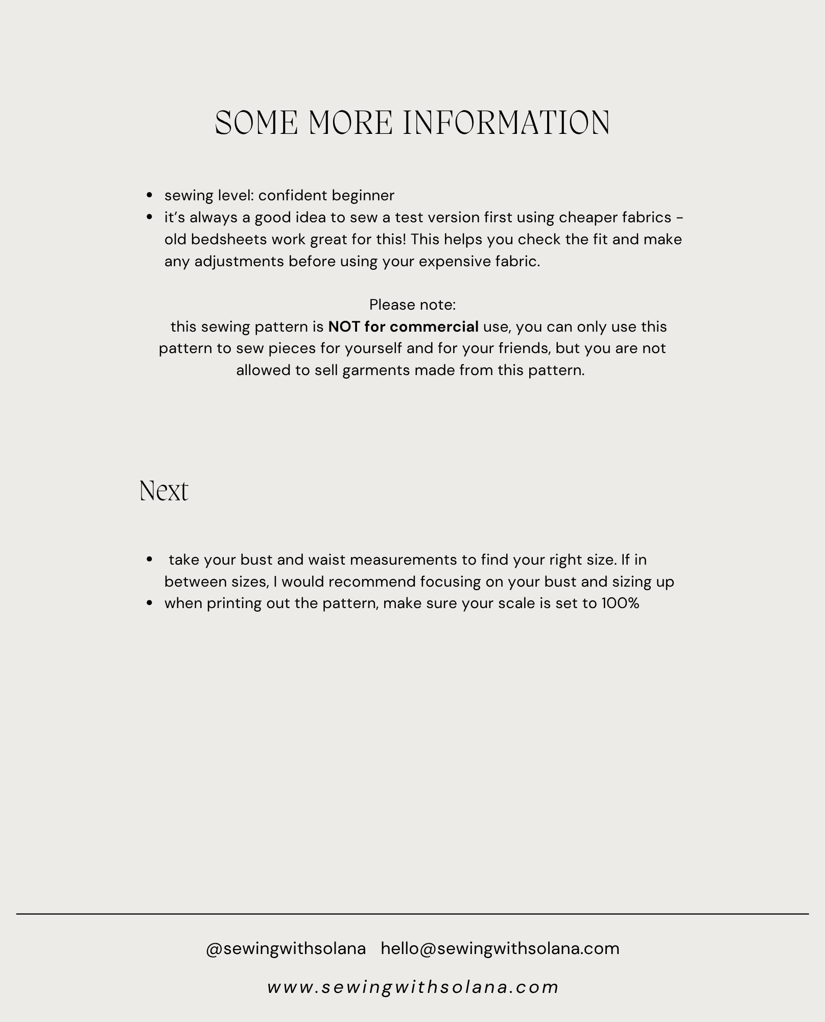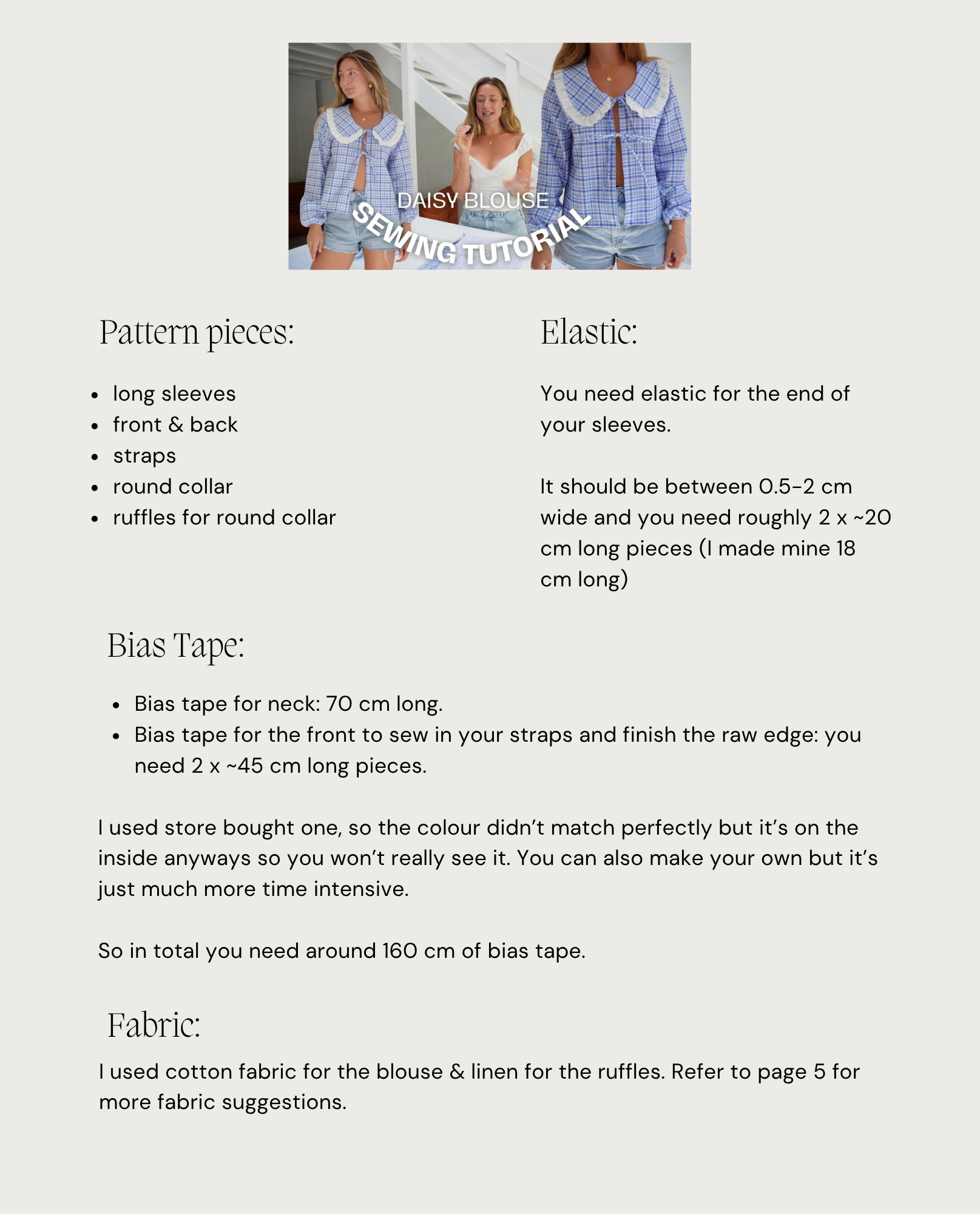 1. the sewing pattern does not come with written instruction, instead you will find a in depth sewing tutorial on YouTube.