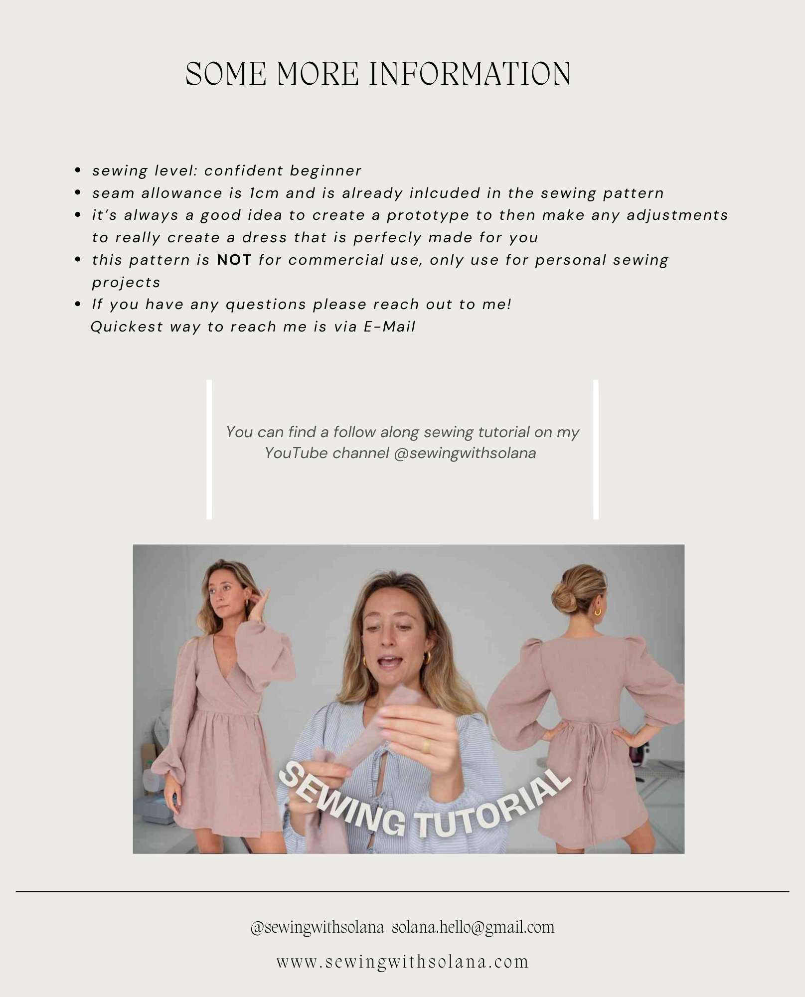 1. the sewing pattern does not come with written instruction, instead you will find a in depth sewing tutorial on YouTube(click here to see video).