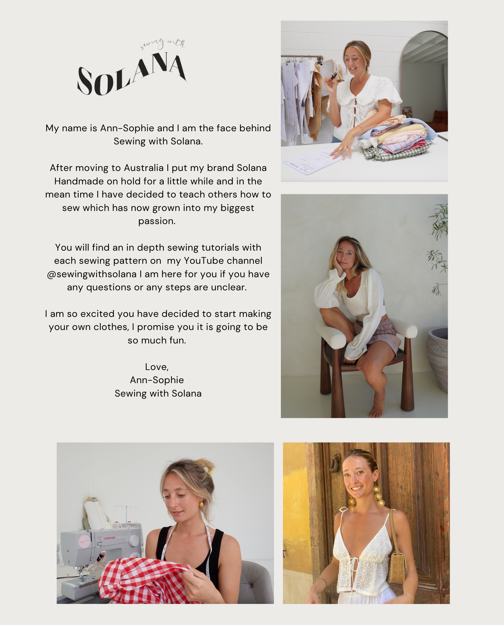 1. the sewing pattern does not come with written instruction, instead you will find a in depth sewing tutorial on YouTube(click here to see video).
