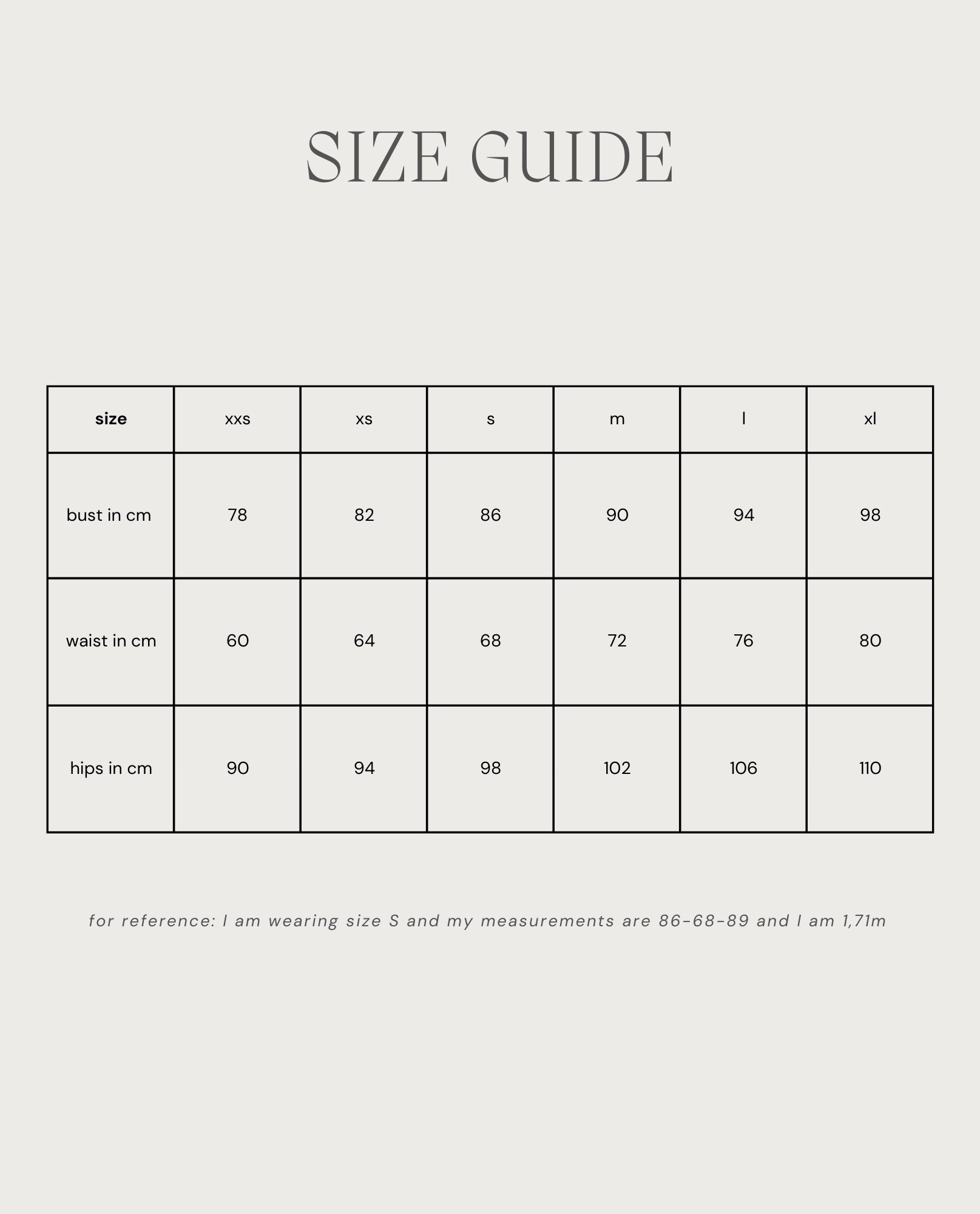 - size range: xxs-xl