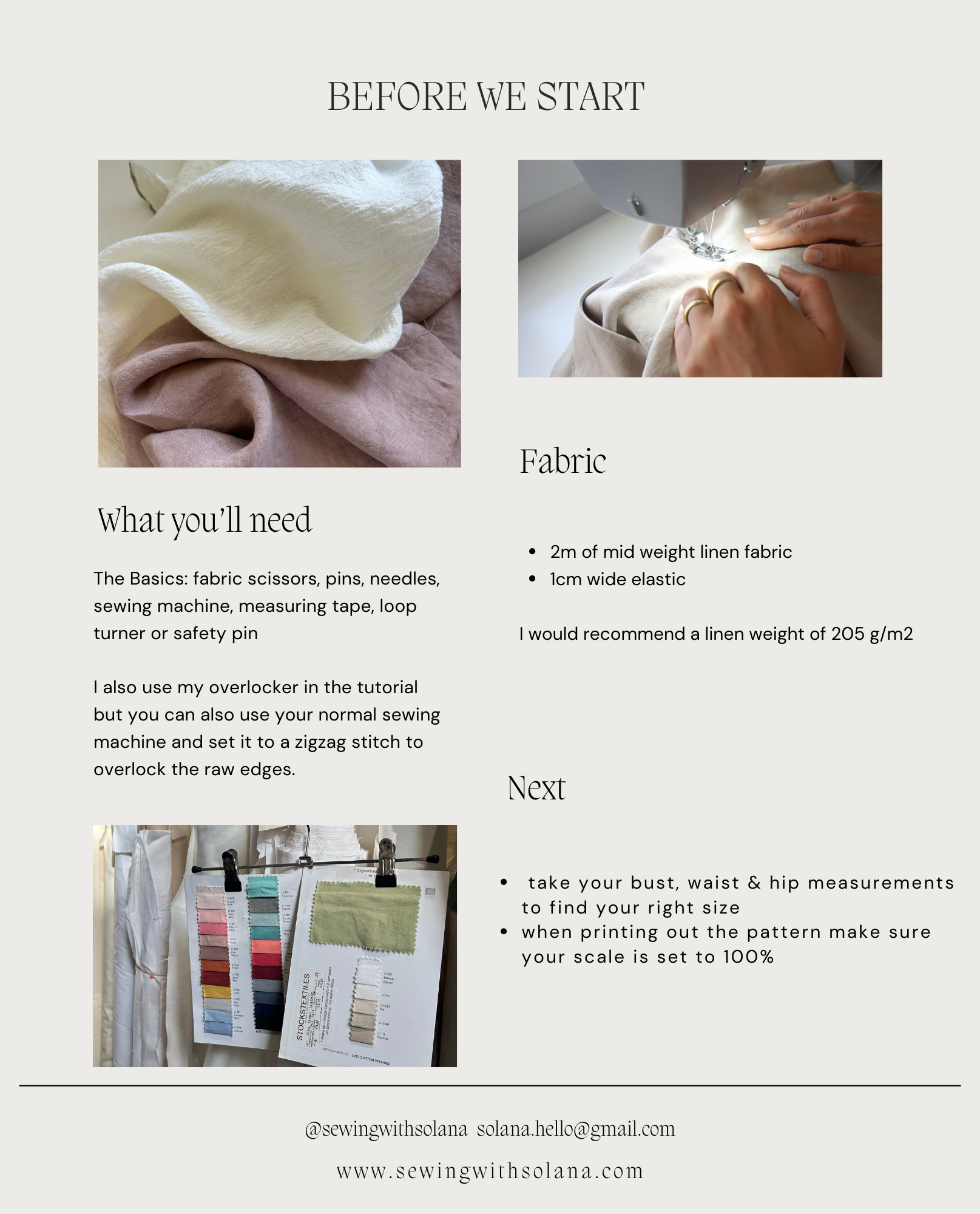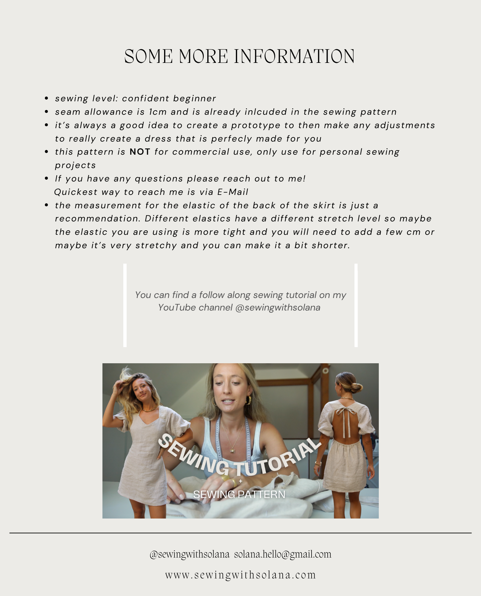 1. the sewing pattern does not come with written instruction, instead you will find a in depth sewing tutorial on YouTube (click here to see video).