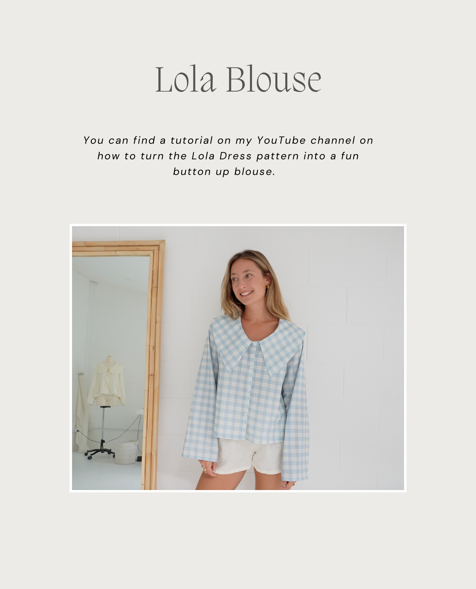 Here is a YouTube tutorial showing you how to turn the Lola Dress into a button up blouse.