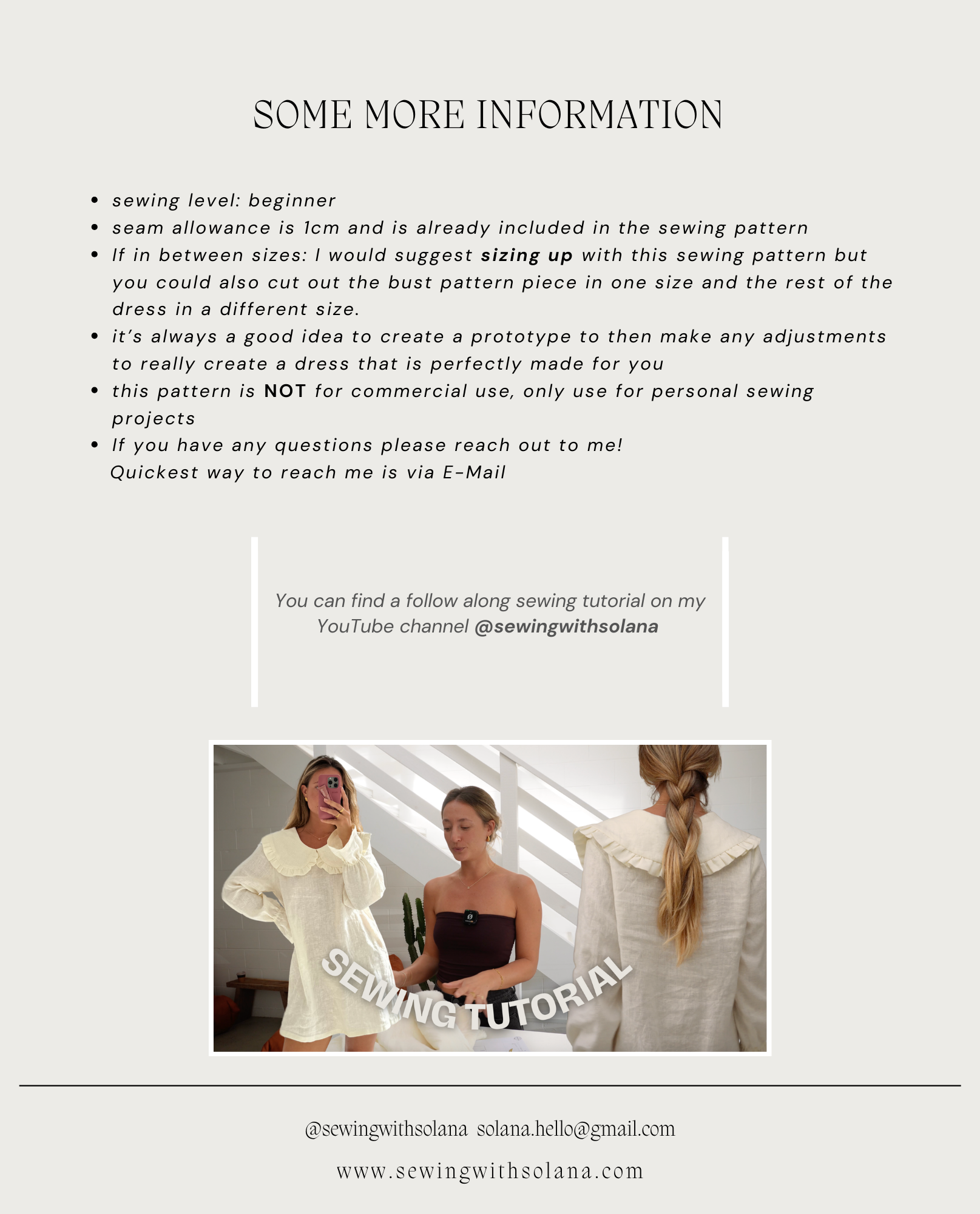 1. the sewing pattern does not come with written instruction, instead you will find a in depth sewing tutorial on YouTube(click here to see video).