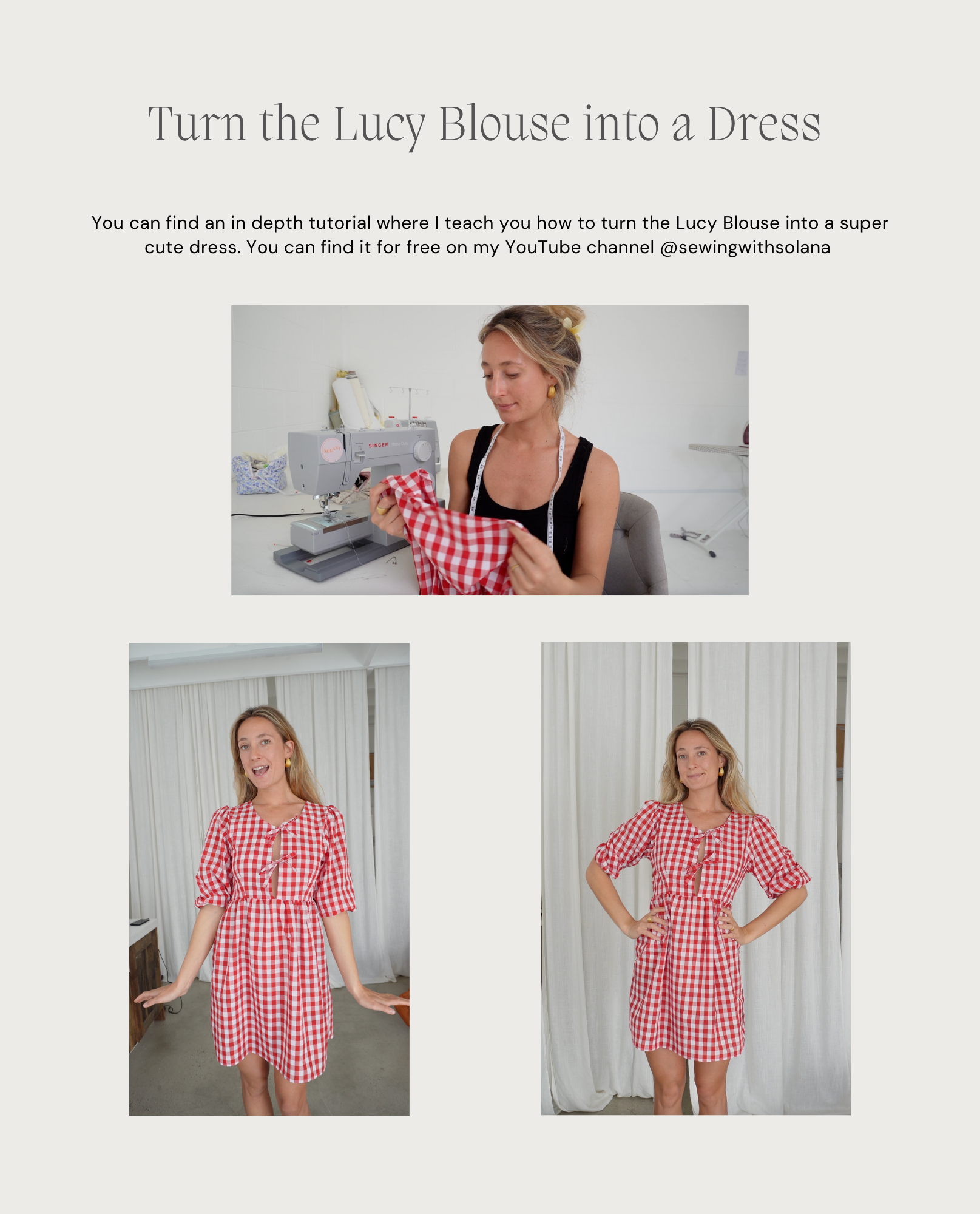You can find an extra tutorial on YouTube now on how to turn the Lucy Blouse into a Lucy Dress