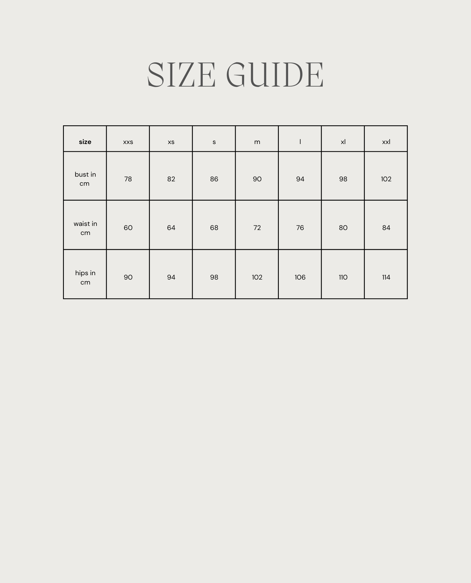 - size range: xxs-xxl