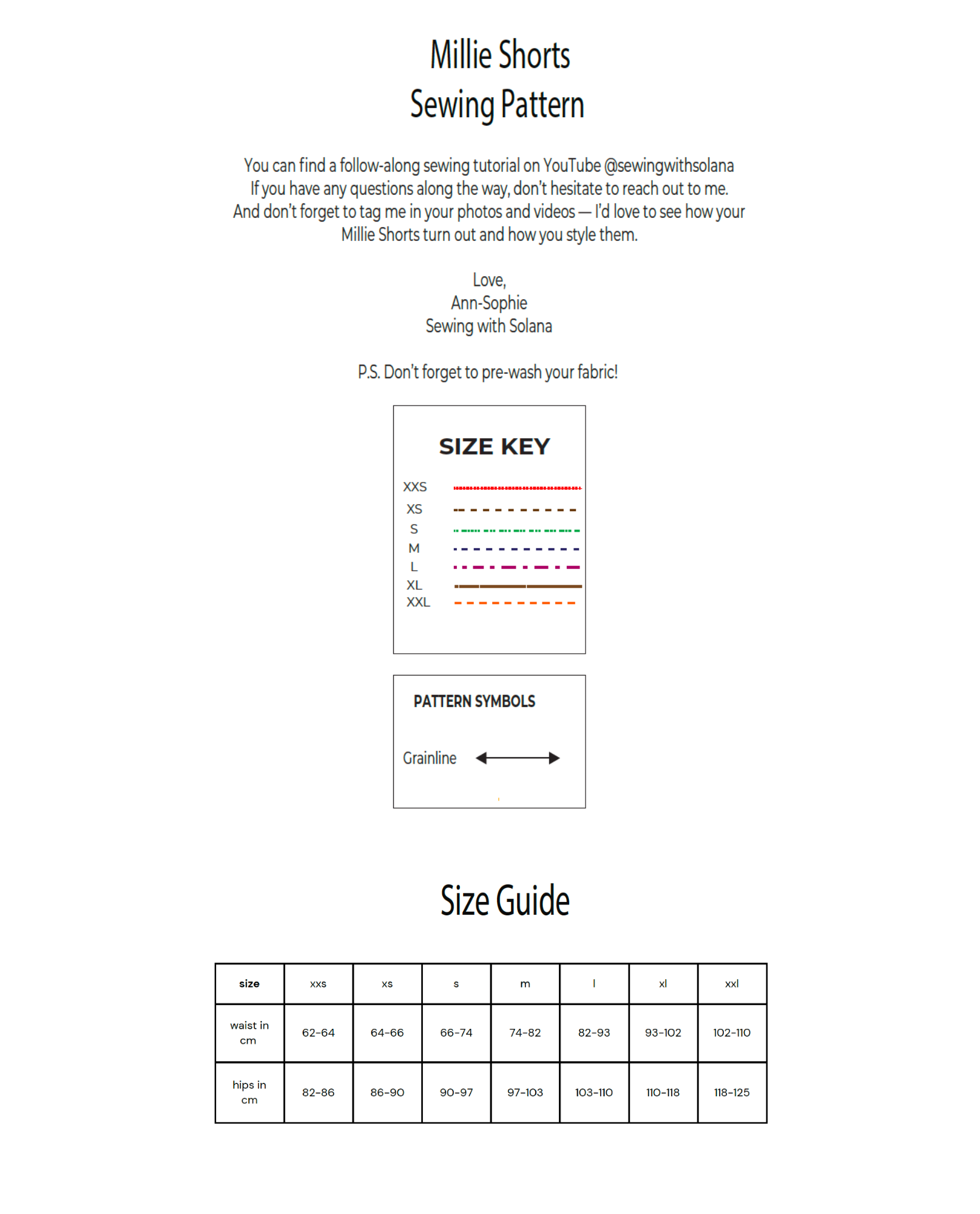 The Millie Shorts pattern doesn't come with written sewing instructions, instead you can find a step-by-step sewing tutorial on my YouTube channel @sewingwithsolana