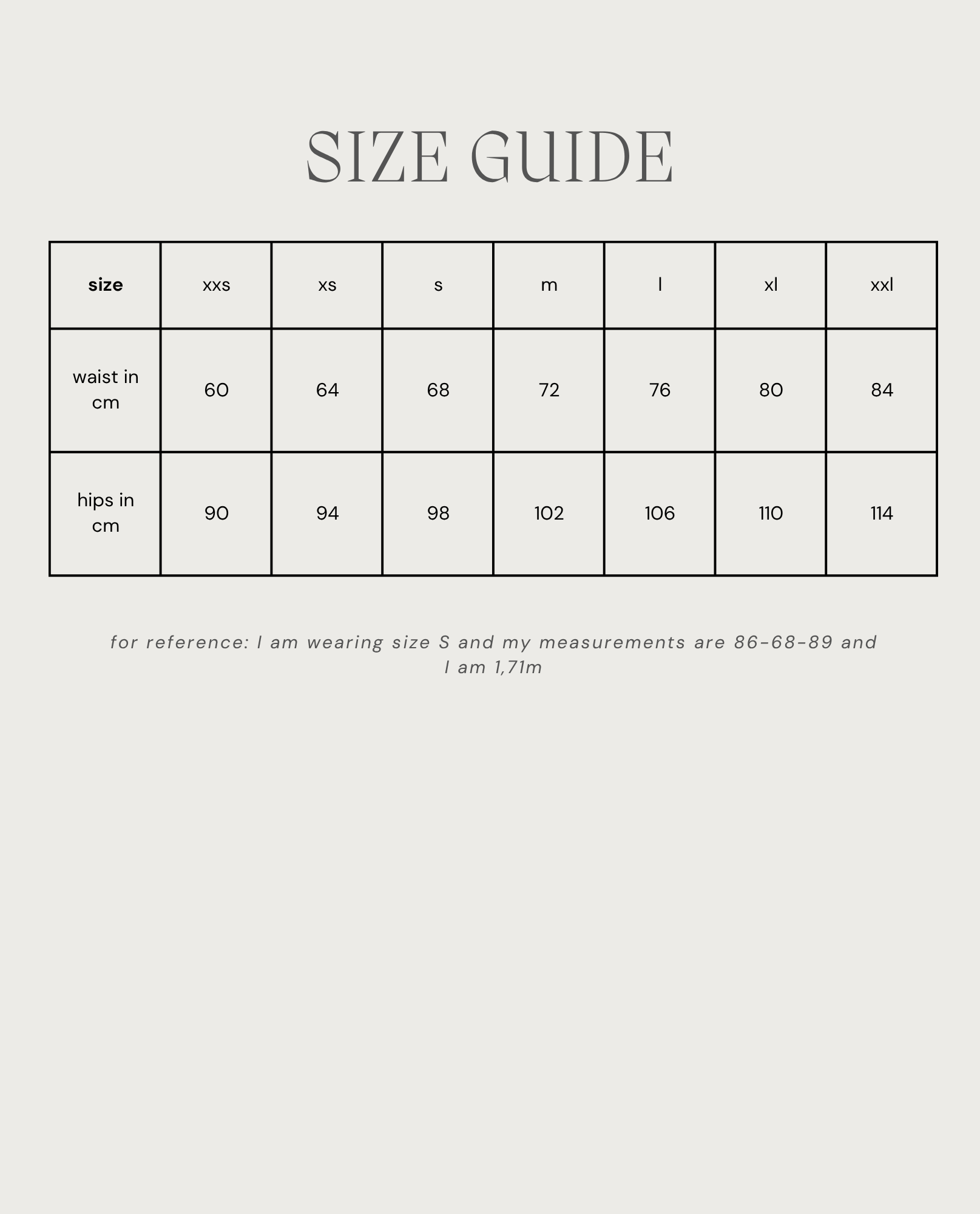 - size range: xxs-xxl