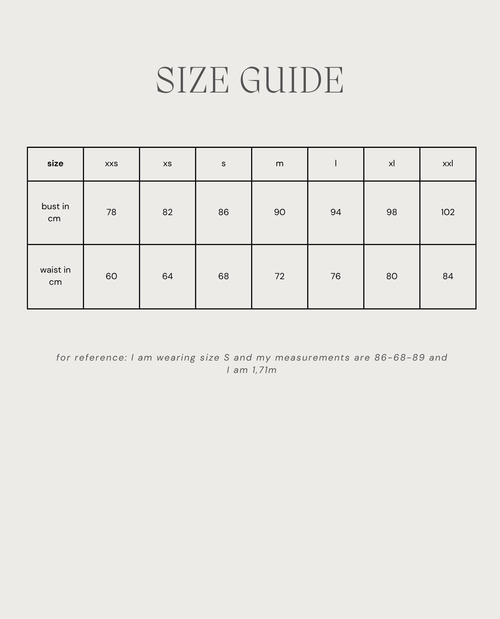 - size range: xxs-xxl